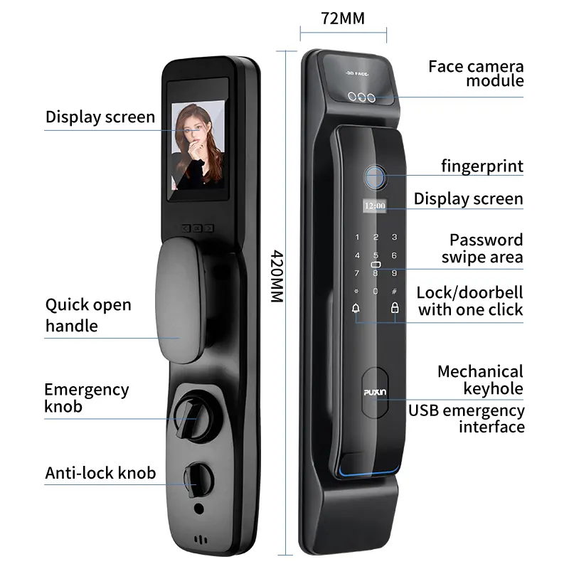În calitate de producător și furnizor profesionist de încuietori inteligente cu rădăcini în China, PuXin are o experiență bogată în industria de încuietori inteligente, cu avantaje de preț favorabile și acoperire pe majoritatea piețelor europene și americane. PuXin DF65 3D Face Smart Lock, un produs biometric de bază, are un algoritm de recunoaștere a feței în infraroșu binocular de înaltă precizie și procesare de înaltă calitate a suprafeței, asigurând o deblocare eficientă, durabilitate și performanță antistatică.