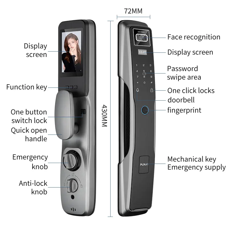 Echipat cu o cameră ochi de pisică de 1 milion de pixeli și ecran HD 1080P, PuXin Q19 Cat Eye Smart Lock formează un sistem de monitorizare vizuală fiabil. Utilizatorii pot vedea clar situația în afara ușii zi și noapte, evitând pericolele de siguranță ale ochilor tradiționali de pisică și sporind siguranța acasă și la birou.